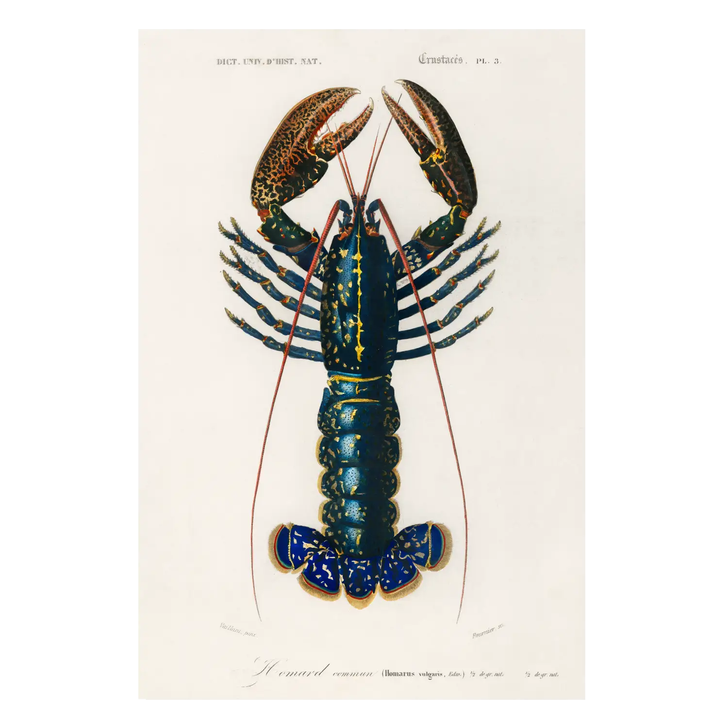 Crimson Crawfish (Palemon Ornatum) illustrated by Charles Dessalines D’ Orbigny (1806-1876).